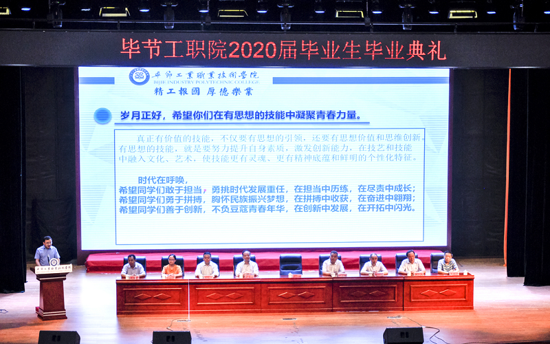 烏蒙大地,惠風(fēng)和暢,碧草如茵。光陰荏苒,歲月如梭。今天,我們在此如約相聚,舉行畢節(jié)工業(yè)職業(yè)技術(shù)學(xué)院首屆畢業(yè)生畢業(yè)典禮,共同參與417名畢業(yè)生生命歷程中神圣而莊嚴(yán)的時刻,共同見證417名畢業(yè)生開啟未來嶄新的人生。在此,我謹(jǐn)代表學(xué)院全體師生向所有畢業(yè)生表示熱烈的祝賀和衷心的祝福,衷心祝愿你們從此鵬程萬里、不負所期!