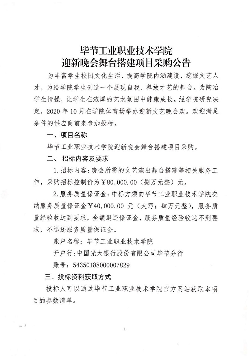 畢節(jié)工業(yè)職業(yè)技術(shù)學(xué)院 迎新晚會舞臺搭建項目采購公告