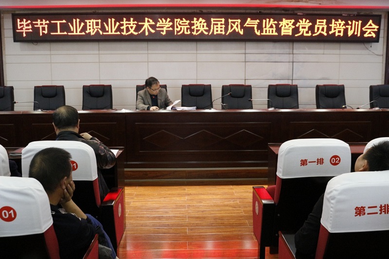 11月17日下午,畢節(jié)工業(yè)職業(yè)技術學院換屆風氣監(jiān)督黨員培訓會在九樓會議室召開,副縣級以上領導干部及全體黨員參加會議。