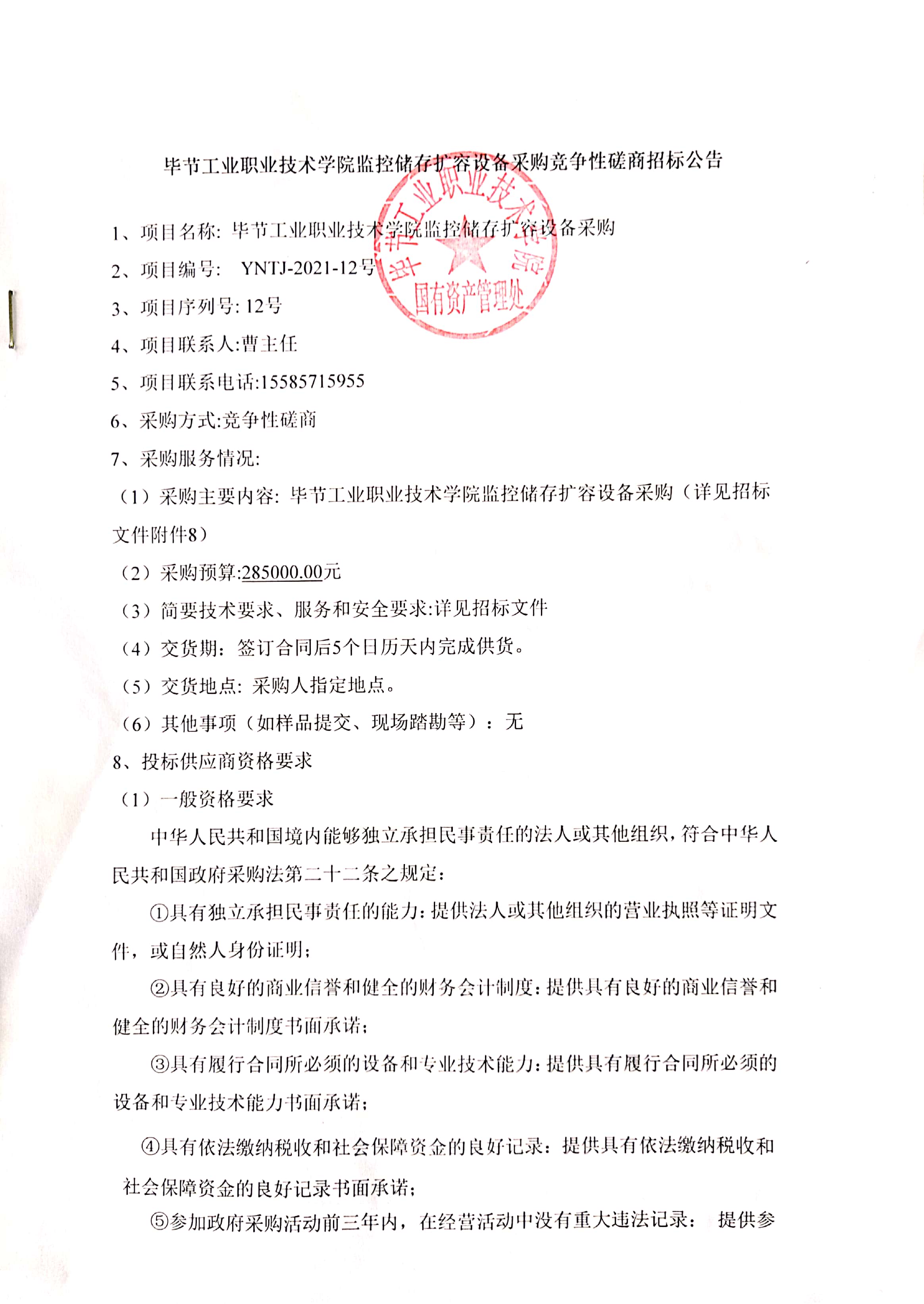 畢節(jié)工業(yè)職業(yè)技術(shù)學(xué)院監(jiān)控儲(chǔ)存擴(kuò)容設(shè)備采購競(jìng)爭(zhēng)性磋商招標(biāo)公告