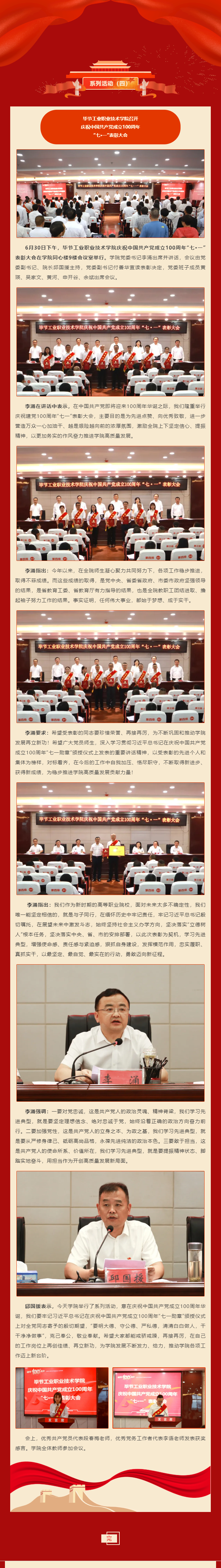 慶祝建黨100周年系列活動(四) | 畢節(jié)工業(yè)職業(yè)技術(shù)學(xué)院召開慶祝中國共產(chǎn)黨成立100周年 “七·一”表彰大會