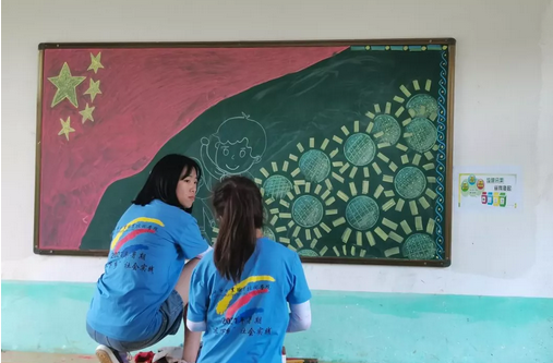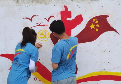在為期10天的“三下鄉(xiāng)”社會實踐中,實踐隊員們把黨史學習教育帶到了田間地頭家中墻上。實踐隊員們走進田間地頭,和當?shù)剜l(xiāng)親們一起學習交流黨的發(fā)展歷程,到家中聆聽當?shù)亍罢稀焙屯宋槔媳?、老黨員講述他們的親身經歷和黨的光輝歷程并宣傳黨的政策,與鄉(xiāng)親們一起溝通鄉(xiāng)村振興的意見和建議。同時,實踐隊員們還將黨的光輝歷史和黨的政策、生態(tài)文明建設、鄉(xiāng)村振興、惠農政策等用墻繪的方式畫在墻上?!皩嵺`隊員們通過這種樸實、接地氣、通俗易懂的方式將黨史學習教育和黨的政策送到了田間地頭、村民家中,打破了傳統(tǒng)的宣講模式,增強了廣大村民振興鄉(xiāng)村的信心。”石丫村駐村書記明正興說。