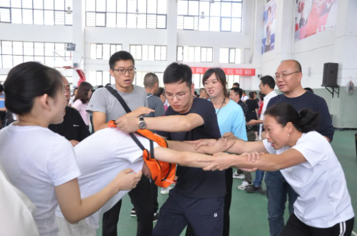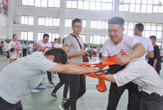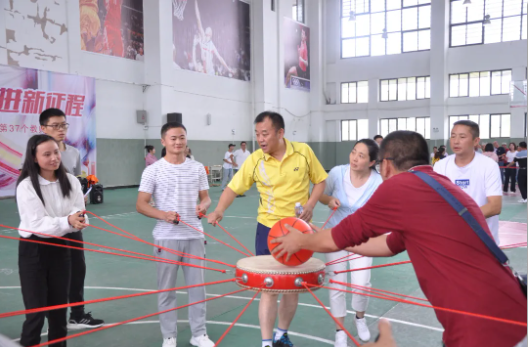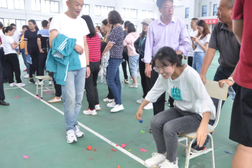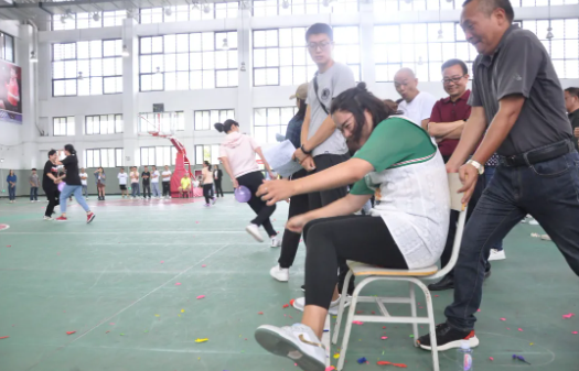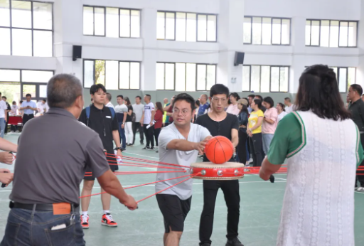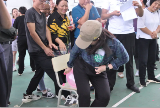 活動共設(shè)置了連環(huán)穿衣、同心鼓、坐爆氣球和拔河四個項目,參與教師分為八個小組進行比拼?,F(xiàn)場笑聲不斷,充滿了熱鬧的氣氛,歡呼聲、加油聲、吶喊聲此起彼伏。