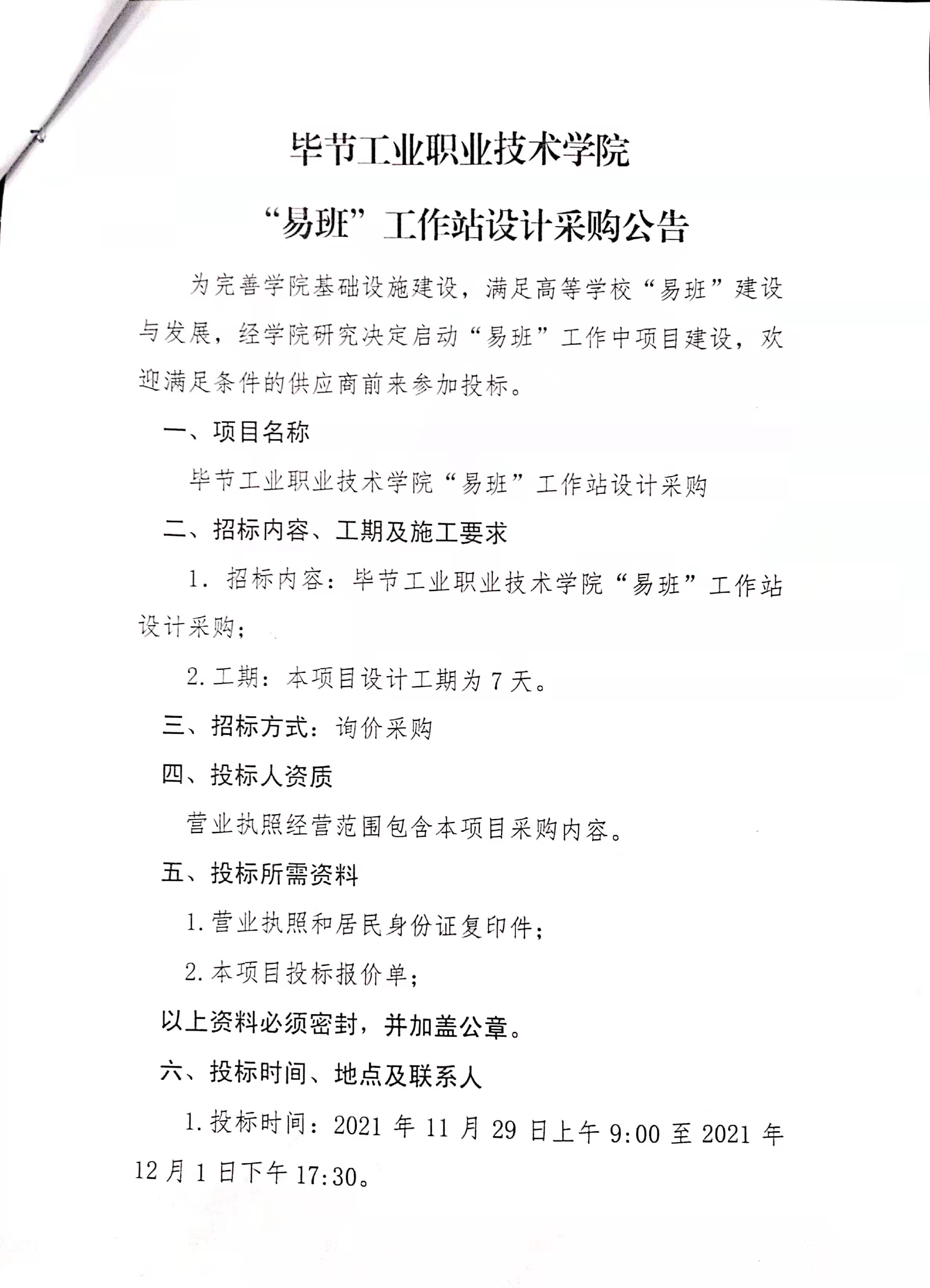 畢節(jié)工業(yè)職業(yè)技術(shù)學(xué)院“易班”工作站設(shè)計(jì)采購(gòu)公告