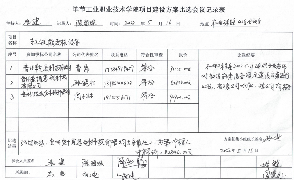 畢節(jié)工業(yè)職業(yè)技術學院機電一體化(中職組)省賽設備設備項目征集方案比選結果公示