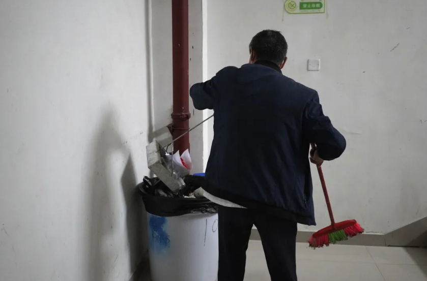 靜默管理這幾天,在畢節(jié)工業(yè)職業(yè)技術(shù)學(xué)院有一個(gè)“怪現(xiàn)象”——留在學(xué)校里面的清潔工并不多,但是校園環(huán)境一直保持著很干凈的狀態(tài),尤其是同心樓。這一來是得益于志愿者們積極參與到衛(wèi)生清潔,二來是有這么個(gè)“老頭”在默默奉獻(xiàn)著。