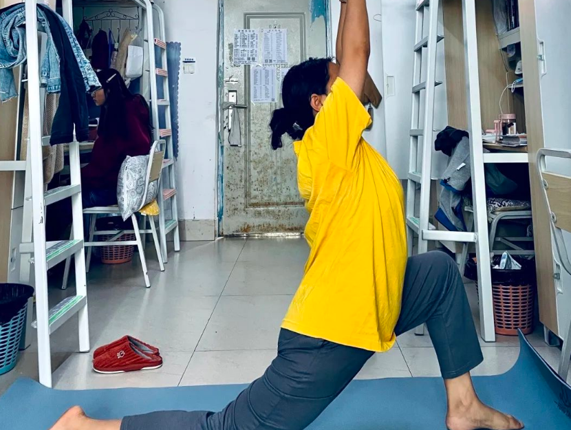 面對當(dāng)前嚴(yán)峻形勢,學(xué)院發(fā)出“停課不停學(xué)”的工作號令,全面啟動網(wǎng)絡(luò)線上教學(xué)。老師們走下三尺講臺,利用線上課堂等方式,不斷創(chuàng)新教學(xué)手段,開啟“云”上教學(xué)模式。疫情改變了學(xué)習(xí)方式,但未改變學(xué)習(xí)的溫度,合理而又自律的居寢學(xué)習(xí)計(jì)劃,讓學(xué)生在這段“特殊的假期”過得充實(shí)而有意義。 抗疫“宅寢”很無奈,多彩活動掃陰霾 學(xué)院還教育和引導(dǎo)廣大青年學(xué)生加強(qiáng)體育鍛煉,增強(qiáng)身體素質(zhì),確保身心健康。課余飯后,在“合理流動、不聚集”的要求下,宿舍成了同學(xué)們學(xué)習(xí)生活的主要場所,但寢室的生活同樣也豐富多彩,洋溢著無限的活力與歡樂。同學(xué)們用自己別樣的方式讓自己的健康“動起來”,有的宿舍坐著一起聊聊天,講訴自己經(jīng)歷的趣事,有的宿舍練起了瑜伽舒展身心,有的玩起了樂器,有的練起了書法,有的創(chuàng)作起了美術(shù)作品,紛紛為自己的靜默生活增添了一份活力,一掃疫情帶來的陰霾。