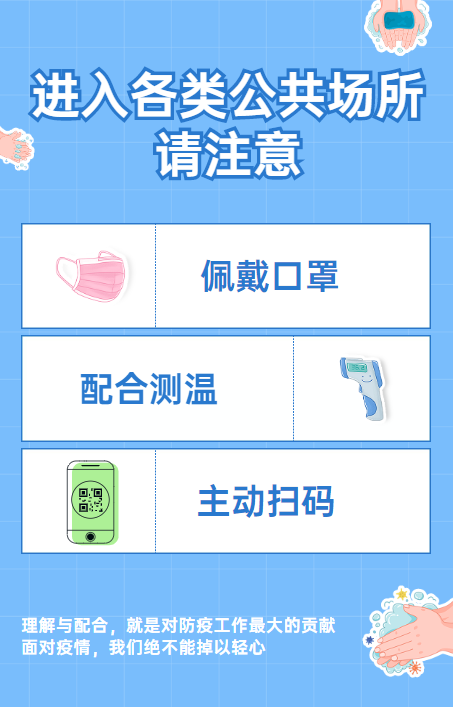 定期清潔消毒公用辦公設(shè)施,并做好清潔消毒記錄。 進(jìn)入工作場(chǎng)所時(shí),要主動(dòng)配合接受體溫檢測(cè)。 在電梯、會(huì)議室等人員密集或空氣流通差的地方要佩戴口罩。 開會(huì)、培訓(xùn)時(shí)選擇相對(duì)寬敞、通風(fēng)的場(chǎng)所,減少人員聚集。 接觸電梯按鈕、扶梯、門把手等公共物品表面后,注意洗手,做好手消毒。 控制辦公室人員密度,減少面對(duì)面辦公。 用餐時(shí)分散就坐,減少交流,縮短就餐時(shí)間。 入住賓館時(shí),主動(dòng)配合接受體溫檢測(cè)、掃場(chǎng)所碼、健康碼查驗(yàn)等措施。 乘坐電梯時(shí)要佩戴口罩。 進(jìn)入賓館房間后,及時(shí)開窗通風(fēng)。 客房公共用品要一客一用(換)一消毒。 推薦使用移動(dòng)支付結(jié)賬。 提前列好購(gòu)物清單,減少購(gòu)物逗留時(shí)間。 主動(dòng)配合接受體溫檢測(cè)、掃場(chǎng)所碼、健康碼查驗(yàn)等措施。 進(jìn)入商場(chǎng)、超市,全程佩戴口罩,與他人保持一米以上社交距離。 購(gòu)物結(jié)束后,注意洗手,做好手消毒。 推薦自助購(gòu)物,使用移動(dòng)支付結(jié)賬。 市場(chǎng)分區(qū)經(jīng)營(yíng),干、濕分開,生、熟分開。 冷鏈?zhǔn)称房伤菰?,保證食品安全。 顧客提前列出購(gòu)買清單,減少購(gòu)物逗留時(shí)間。 營(yíng)業(yè)結(jié)束后,做好各攤位和公共區(qū)域的清潔和消毒。 推薦使用移動(dòng)支付結(jié)賬。 進(jìn)入銀行后,全程佩戴口罩,與他人保持一米以上社交距離。 主動(dòng)配合接受體溫檢測(cè)、健康碼查驗(yàn)等措施。 辦理完業(yè)務(wù)后,及時(shí)進(jìn)行手部清潔消毒。 推薦使用ATM機(jī)自助辦理業(yè)務(wù)。 加強(qiáng)對(duì)座椅扶手、窗口臺(tái)面、自助機(jī)器按鍵等高頻接觸部位的清潔消毒。 提倡分餐制,提供公勺公筷,非一次性使用餐具要一客一用一消毒,就餐時(shí)間盡量縮短。 加強(qiáng)通風(fēng)換氣和清潔消毒,溫度適宜時(shí),盡量采用自然通風(fēng),加強(qiáng)室內(nèi)空氣流通。 就餐前后,及時(shí)進(jìn)行手部清潔消毒。 優(yōu)先使用電子菜單點(diǎn)餐,使用移動(dòng)支付結(jié)賬。