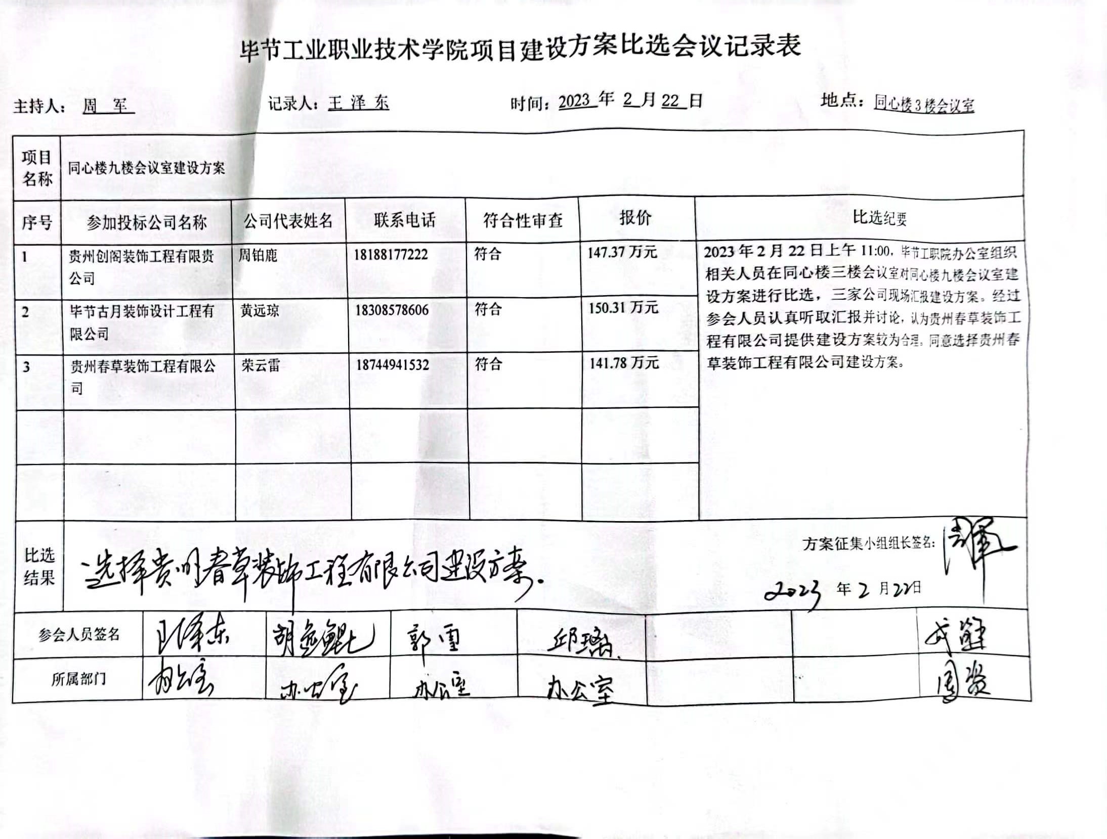 畢節(jié)工業(yè)職業(yè)技術學院同心樓九樓會議室建設方案