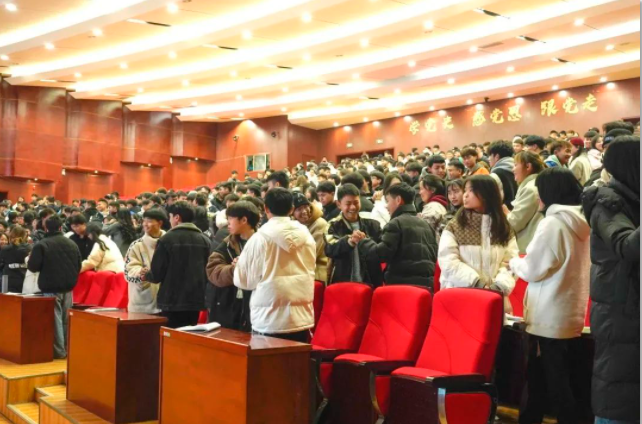 2月15日,學(xué)院黨委委員、副院長黃文碧在會(huì)議中心為各班級(jí)心理委員、寢室心理聯(lián)絡(luò)員共589人開展業(yè)務(wù)知識(shí)培訓(xùn)。 (別開生面的破冰游戲“擊掌”活躍了現(xiàn)場(chǎng)氣氛,拉開了培訓(xùn)的序幕)