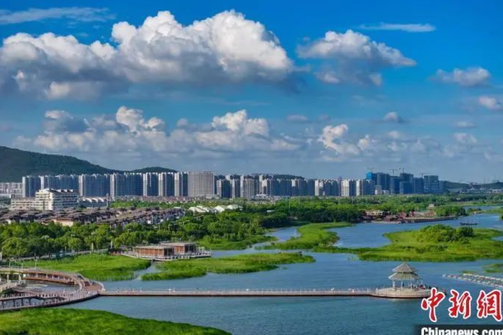 資料圖:航拍蘇州太湖湖濱國家濕地公園,藍天碧水生態(tài)美。泱波 攝