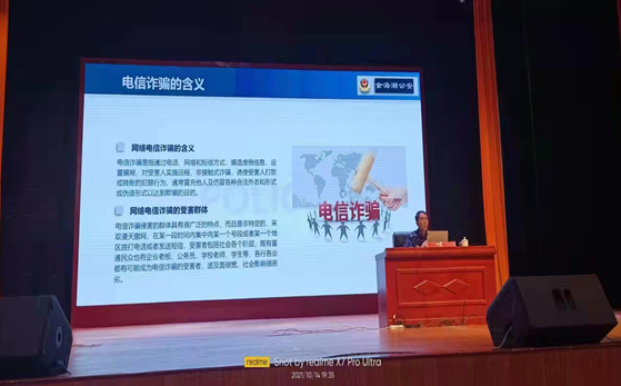 此次法制講座圍繞“防范電信詐騙、禁毒教育、法律法規(guī)知識”等方面給全體師生上了一次生動的法制教育課。
