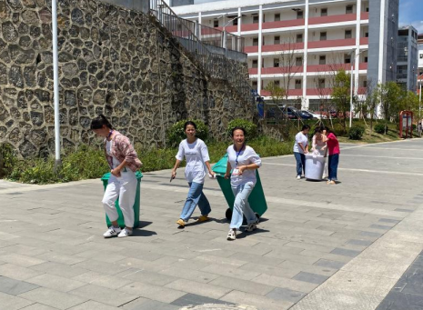 2021年9月2日中午,第三教學(xué)黨支部的黨員教師做好帶頭作用,親自清掃各樓層垃圾滿溢的垃圾桶,和學(xué)生一起到垃圾回收點(diǎn)倒垃圾。
