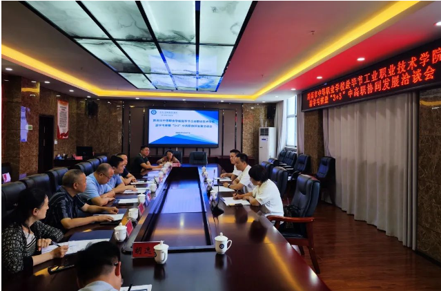 9月27日,黔西市中等職業(yè)學(xué)校副校長(zhǎng)劉祖澤一行率學(xué)?!肮そ嘲唷?10名學(xué)生赴我院開(kāi)展游學(xué)活動(dòng)并就“3+3”中高職協(xié)同發(fā)展有關(guān)事宜進(jìn)行座談。學(xué)院黨委委員、副院長(zhǎng)吳家文主持座談會(huì),黔西中等職業(yè)學(xué)校副校長(zhǎng)劉祖澤、教務(wù)處 主任王安祿、交通部教學(xué)主任胡云及學(xué)院相關(guān)部門(mén)負(fù)責(zé)同志參加座談。