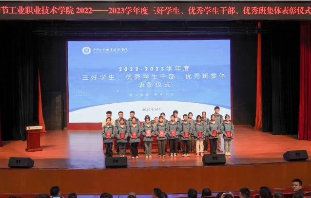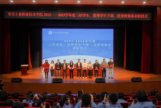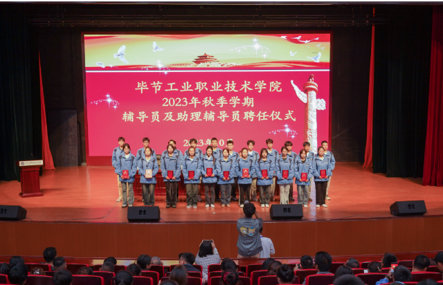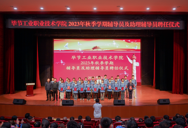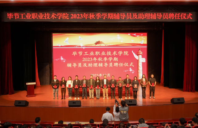 10月19日,畢節(jié)工業(yè)職業(yè)技術(shù)學(xué)院2022—2023學(xué)年度表彰儀式、2023級輔導(dǎo)員及助理輔導(dǎo)員聘任儀式在會議中心舉行。學(xué)院黨委副書記付善華,黨委委員、副院長黃河,黨委委員、紀(jì)委書記向陽,黨委委員、副院長黃文碧,黨委委員、宣傳統(tǒng)戰(zhàn)部部長余斌出席會議。800余名師生代表參加會議。會議由黃文碧主持。