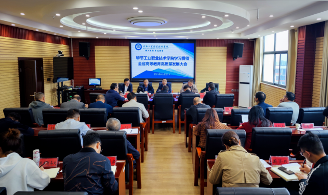 10月23日,畢節(jié)工業(yè)職業(yè)技術(shù)學(xué)院在同心樓七樓會(huì)議室召開學(xué)習(xí)貫徹全省高等教育高質(zhì)量發(fā)展大會(huì)精神會(huì)議,傳達(dá)學(xué)習(xí)全省高等教育高質(zhì)量發(fā)展大會(huì)精神,就抓好大會(huì)精神的貫徹落實(shí),推進(jìn)學(xué)院高質(zhì)量發(fā)展提出要求。