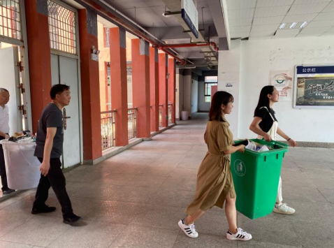 2021年9月2日中午,第三教學(xué)黨支部的黨員教師做好帶頭作用,親自清掃各樓層垃圾滿溢的垃圾桶,和學(xué)生一起到垃圾回收點(diǎn)倒垃圾。