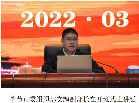 受畢節(jié)市委組織部委托,市委組織部文超副部長出席了開班式并發(fā)表講話,畢節(jié)工業(yè)職業(yè)技術(shù)學(xué)院黨委委員、副院長黃文碧同志主持開班式。