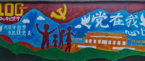 在為期10天的“三下鄉(xiāng)”社會(huì)實(shí)踐中,實(shí)踐隊(duì)員們把黨史學(xué)習(xí)教育帶到了田間地頭家中墻上。實(shí)踐隊(duì)員們走進(jìn)田間地頭,和當(dāng)?shù)剜l(xiāng)親們一起學(xué)習(xí)交流黨的發(fā)展歷程,到家中聆聽(tīng)當(dāng)?shù)亍罢稀焙屯宋槔媳⒗宵h員講述他們的親身經(jīng)歷和黨的光輝歷程并宣傳黨的政策,與鄉(xiāng)親們一起溝通鄉(xiāng)村振興的意見(jiàn)和建議。同時(shí),實(shí)踐隊(duì)員們還將黨的光輝歷史和黨的政策、生態(tài)文明建設(shè)、鄉(xiāng)村振興、惠農(nóng)政策等用墻繪的方式畫(huà)在墻上?!皩?shí)踐隊(duì)員們通過(guò)這種樸實(shí)、接地氣、通俗易懂的方式將黨史學(xué)習(xí)教育和黨的政策送到了田間地頭、村民家中,打破了傳統(tǒng)的宣講模式,增強(qiáng)了廣大村民振興鄉(xiāng)村的信心?!笔敬羼v村書(shū)記明正興說(shuō)。