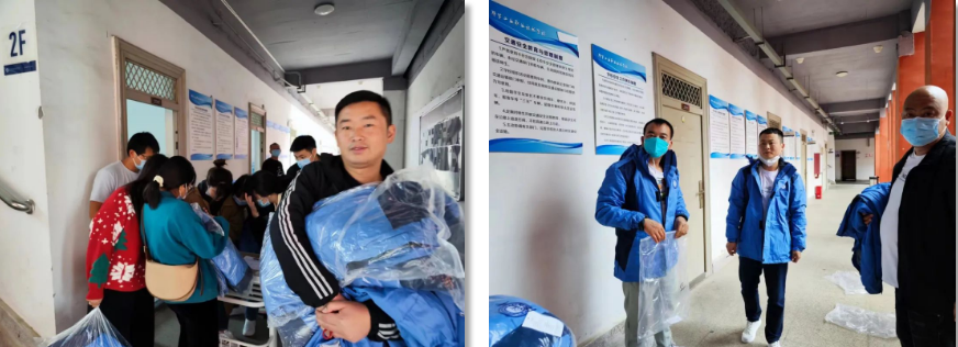 當(dāng)實(shí)施靜默管理后,我院80余名教職工連夜趕回學(xué)校,他們勇毅逆行、不畏風(fēng)險(xiǎn),義無(wú)反顧地奮戰(zhàn)在抗擊疫情的一線,他們不僅為全院師生帶來(lái)感動(dòng),更為疫情防控注入必勝的決心。由于時(shí)間緊、任務(wù)重,他們大多數(shù)來(lái)得匆忙,恰遇氣溫驟降,教職工們著裝單薄、無(wú)換洗衣物便成了大問(wèn)題。桐城市創(chuàng)意服裝有限公司得知情況后,立即決定將為22級(jí)新生準(zhǔn)備的校服中拿出沖鋒衣80余件無(wú)償捐獻(xiàn)給學(xué)院抗疫一線教職工保暖所用。