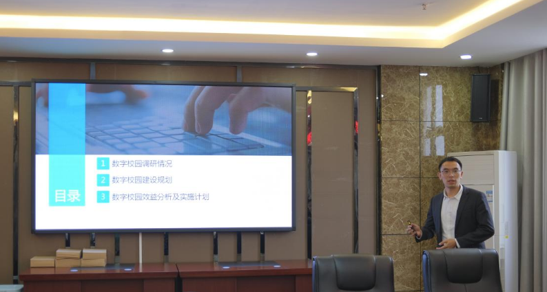 會上,畢節(jié)市烏蒙云大數(shù)據產業(yè)發(fā)展有限責任公司代表、建設項目組組長黃歡從學院數(shù)字校園建設目標、現(xiàn)狀及需求分析、技術架構、保障措施、實施進度安排等方面詳細匯報了學校數(shù)字校園建設方案的工作計劃和主要建設內容。