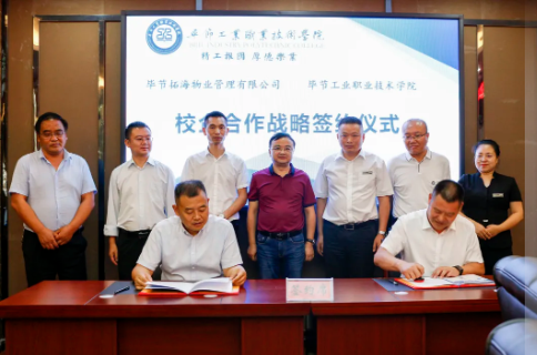 為深入貫徹落實(shí)習(xí)近平總書(shū)記對(duì)技能人才工作重要指示精神,切實(shí)做好新時(shí)代技能人才工作,9月3日,畢節(jié)拓海物業(yè)管理有限公司與畢節(jié)工業(yè)職業(yè)技術(shù)學(xué)院校企合作戰(zhàn)略協(xié)議簽訂儀式在學(xué)院同心樓三樓會(huì)議室舉行。畢節(jié)拓海物業(yè)管理有限公司總經(jīng)理?xiàng)钤聫?qiáng)、常務(wù)副總經(jīng)理邱鋒一行,學(xué)院黨委書(shū)記李涌,黨委副書(shū)記、院長(zhǎng)邱國(guó)援,黨委委員、副院長(zhǎng)吳家文、相關(guān)部門(mén)負(fù)責(zé)人及教師代表出席儀式。簽約儀式由邱國(guó)援主持。