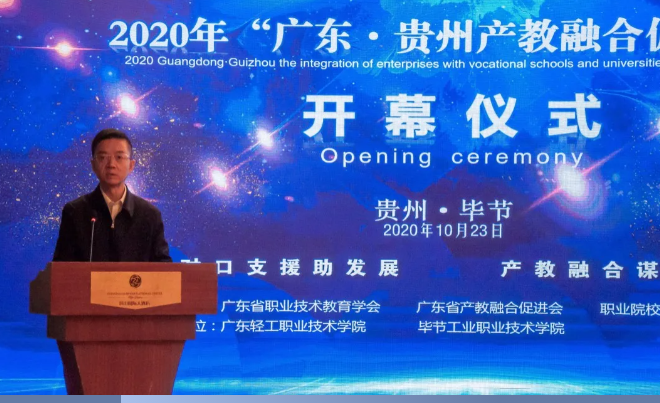 10月23日,廣東?貴州產(chǎn)教融合促進(jìn)大會(huì)在畢節(jié)隆重召開。廣東省教育廳巡視員朱俊文,貴州省教育廳一級(jí)巡視員鞠洪出席會(huì)議并致辭,畢節(jié)市委常委、副市長胡愛斌致歡迎辭,廣東輕工職業(yè)技術(shù)學(xué)院黨委書記杜安國作介紹,會(huì)議由畢節(jié)工業(yè)職業(yè)技術(shù)學(xué)院黨委副書記、院長邱國援全程主持。廣東省教育廳、貴州省教育廳、廣州市教育局、畢節(jié)市教育局相關(guān)負(fù)責(zé)人及參與產(chǎn)教融合大會(huì)的校企單位主要負(fù)責(zé)人參加會(huì)議。此次會(huì)議由廣東省職業(yè)技術(shù)教育學(xué)會(huì)、廣東省產(chǎn)教融合促進(jìn)會(huì)、職業(yè)院校協(xié)同發(fā)展聯(lián)盟主辦,廣東輕工職業(yè)技術(shù)學(xué)院、畢節(jié)工業(yè)職業(yè)技術(shù)學(xué)院承辦。