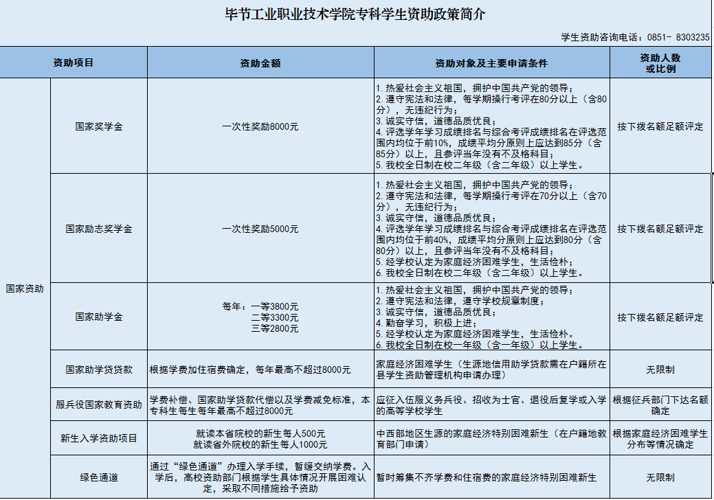 畢節(jié)工業(yè)職業(yè)技術(shù)學(xué)院專(zhuān)科學(xué)生資助政策簡(jiǎn)介