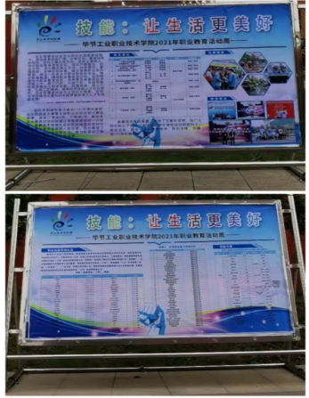 為了營造職業(yè)教育活動周氛圍,讓職業(yè)教育精神深入學(xué)生心中,我院制作了系列宣傳展板,緊扣職教活動 “技能:讓生活更美好” 宣傳主題,大力宣傳和展示我院學(xué)生2021年參加貴州省職業(yè)技能大賽獲獎學(xué)生風(fēng)采。并結(jié)合各專業(yè)特點及國家職業(yè)技能標(biāo)準、職業(yè)技能鑒定和考核相關(guān)要求,為即將開展的學(xué)院首屆學(xué)生職業(yè)技能大賽做好宣傳動員工作,從而鼓勵廣大學(xué)生努力學(xué)習(xí),練就專業(yè)技能。
